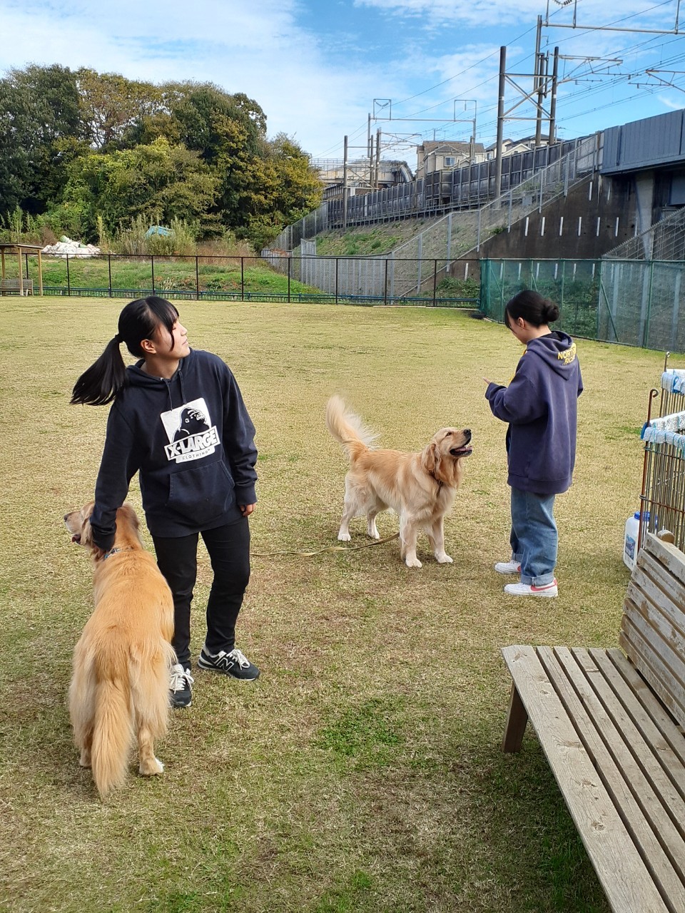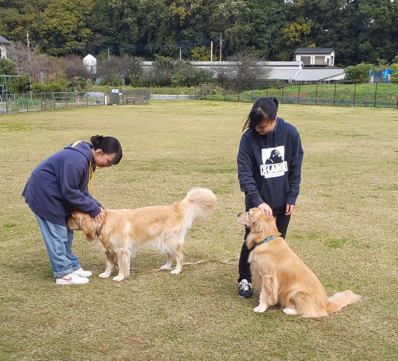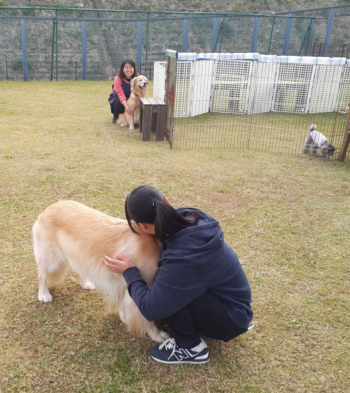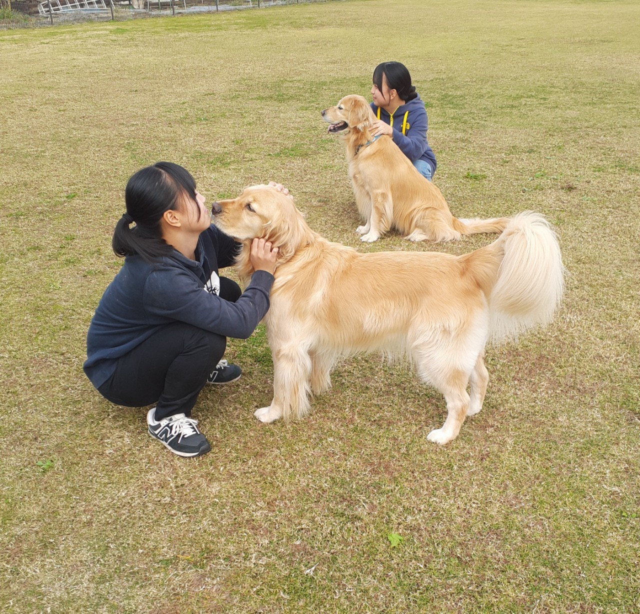 お姉ちゃん達、犬を飼っていないそうなのですが、犬達がすぐに慣れて甘えて心を開いてしまう。