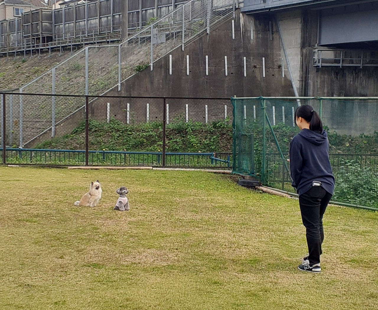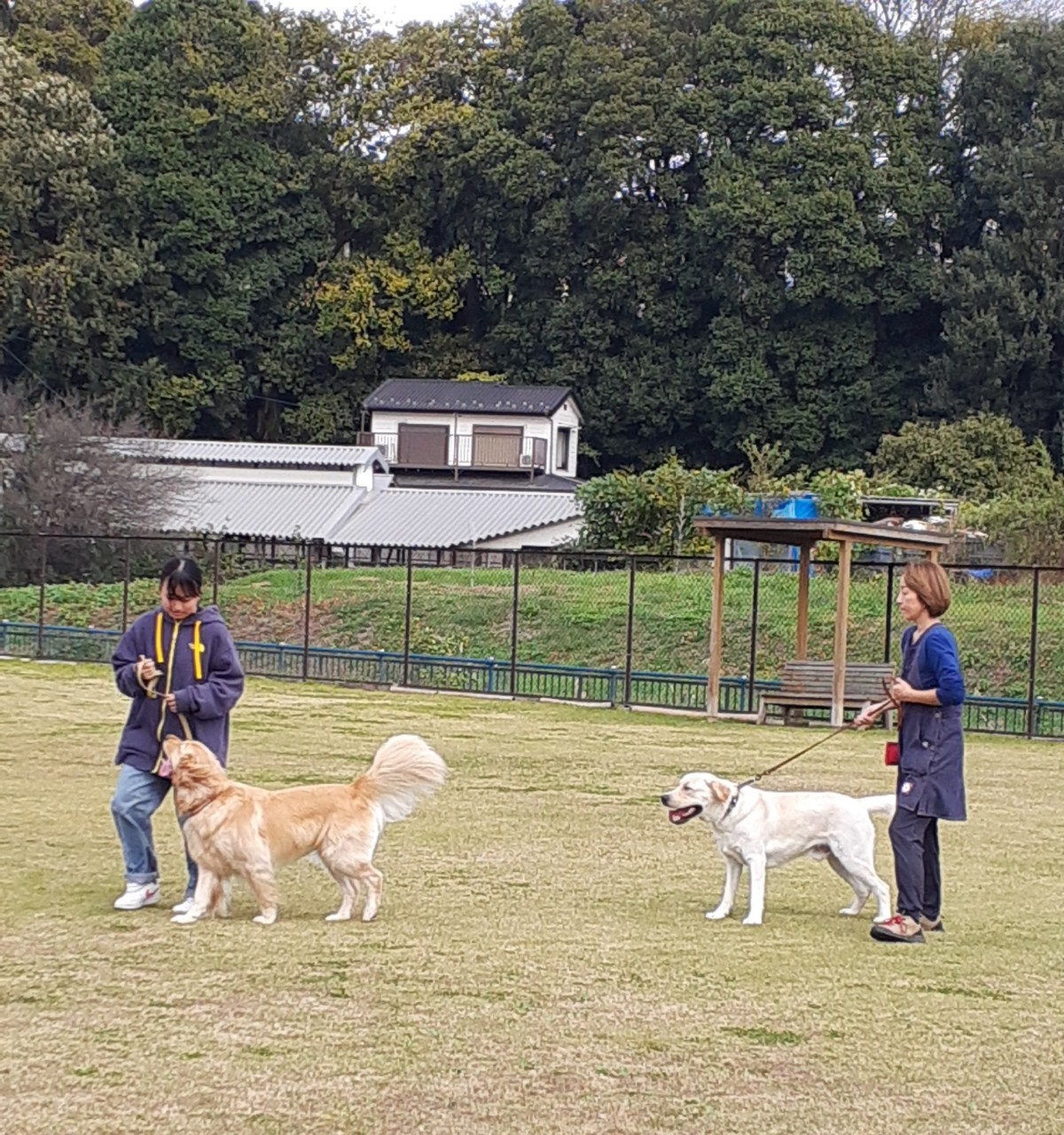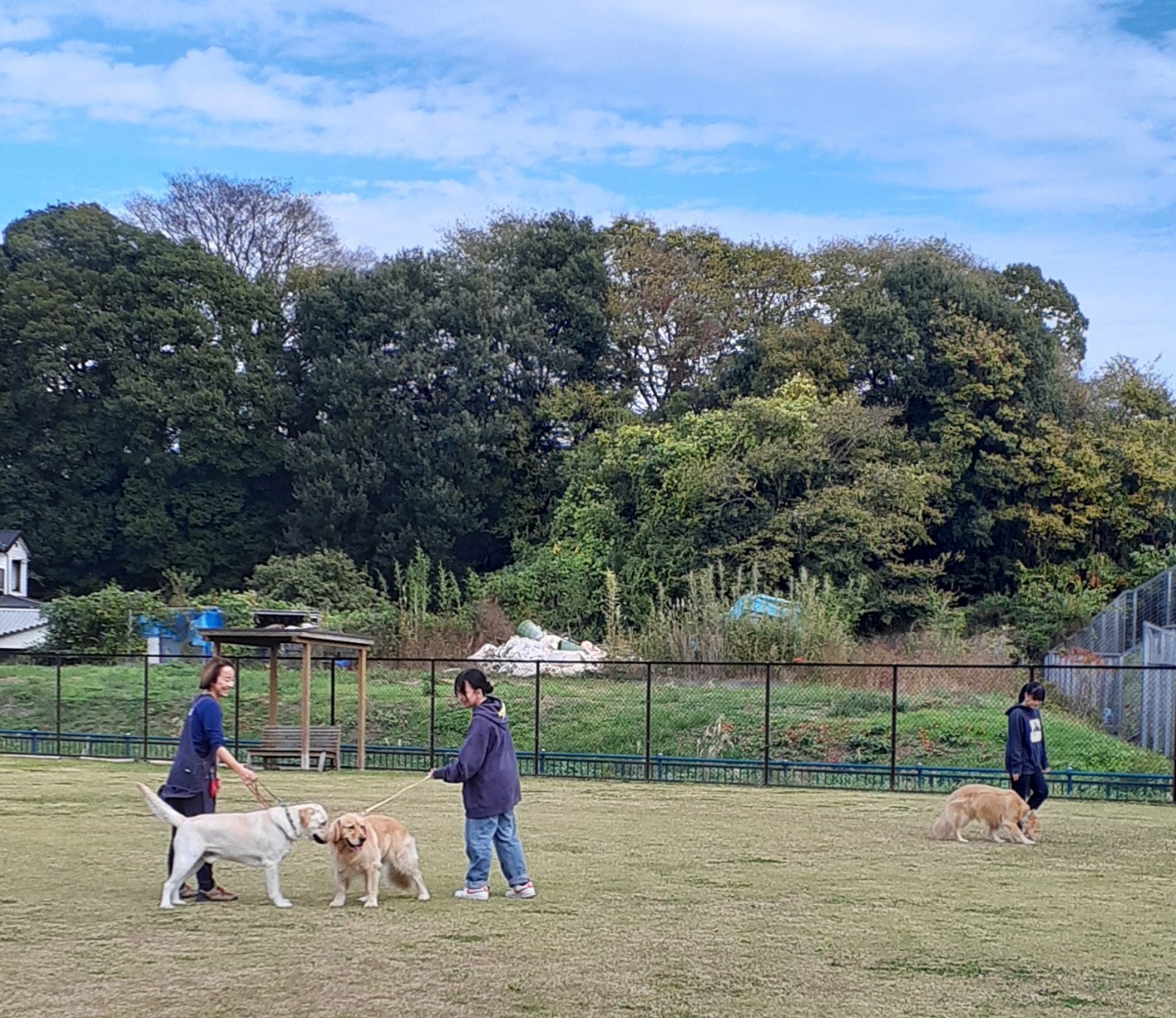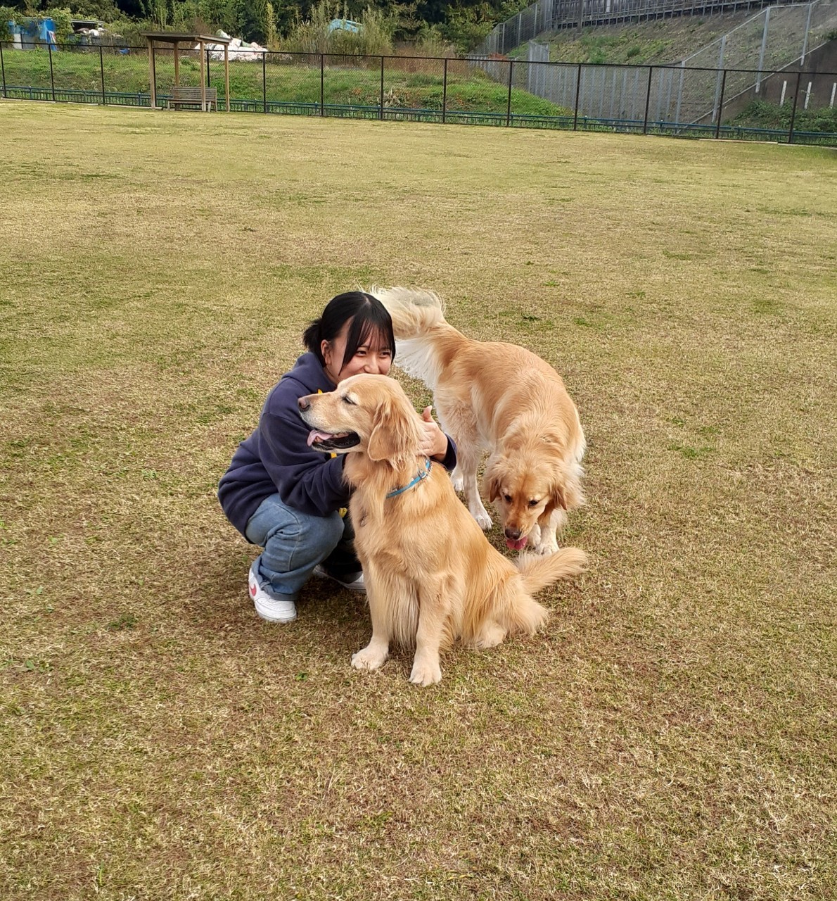 お姉ちゃん達、犬を飼っていないそうなのですが、犬達がすぐに慣れて甘えて心を開いてしまう。