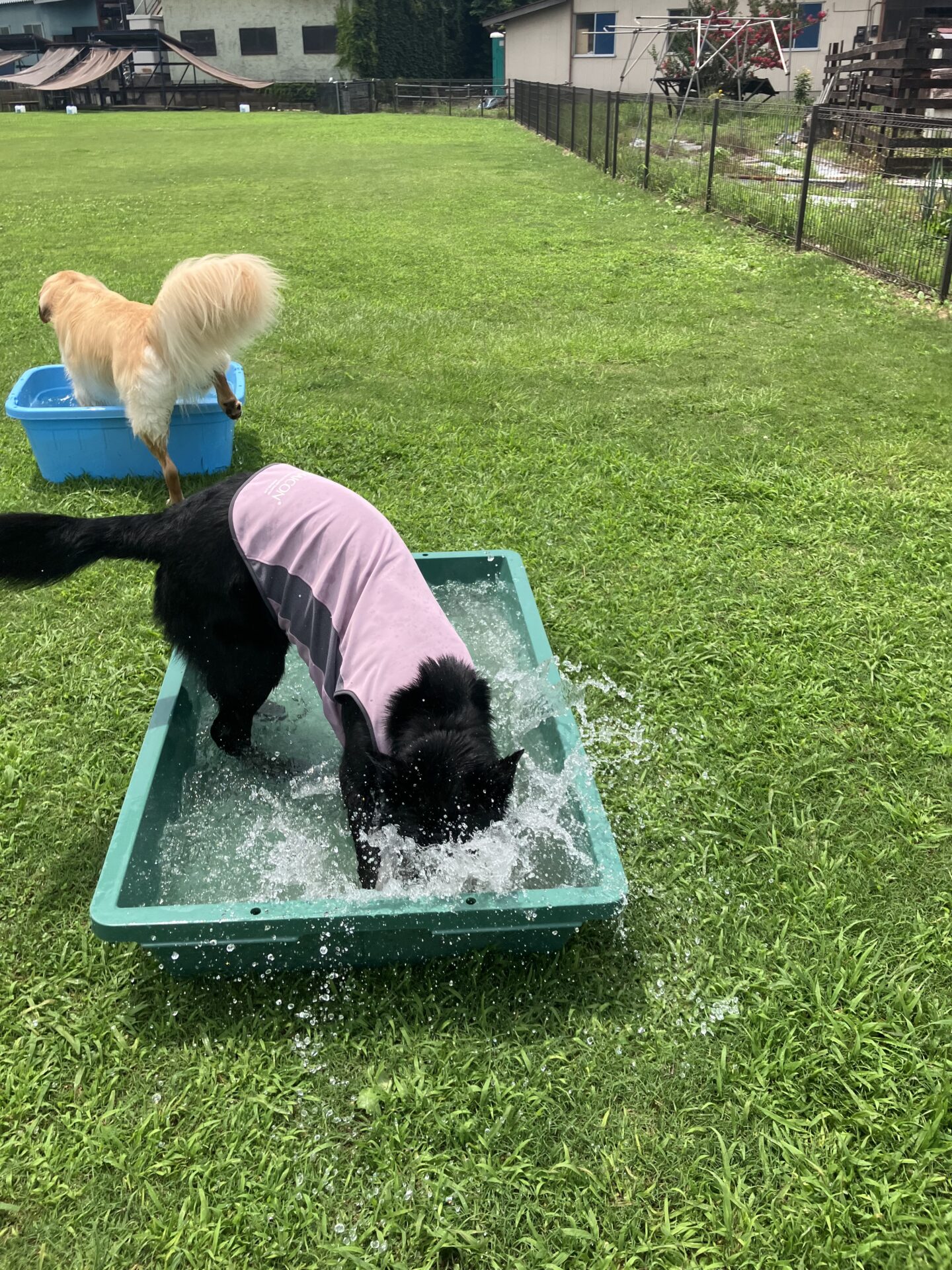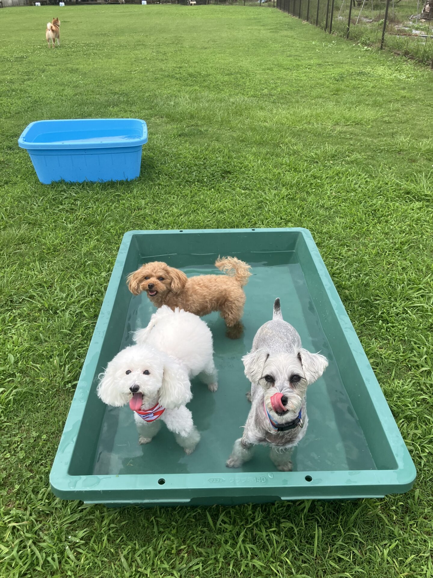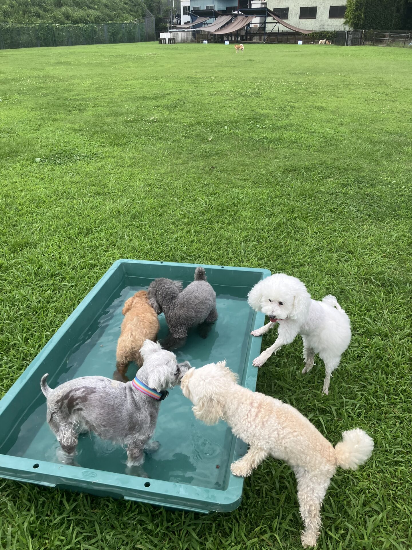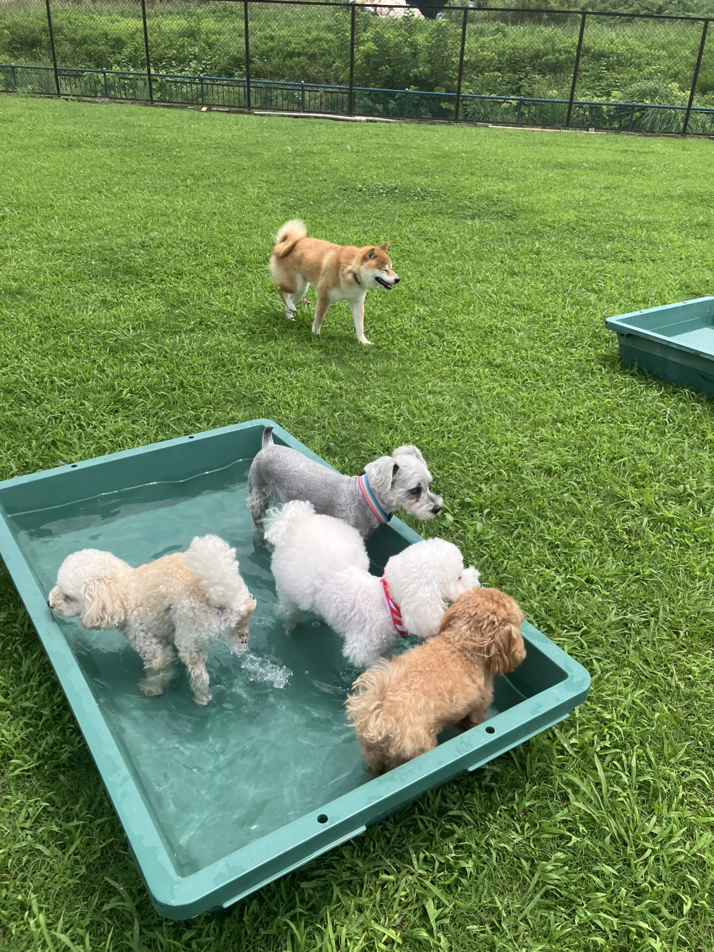 暑い時期は、お水に入りたい子はまだ安心なのですが、そんなに入らない子は特に、熱中症にならない様に、ワンコもスタッフも、ランとお部屋を交代しながら、一日みんなが元気に過ごせる様、チームプレイでフル稼働しております。