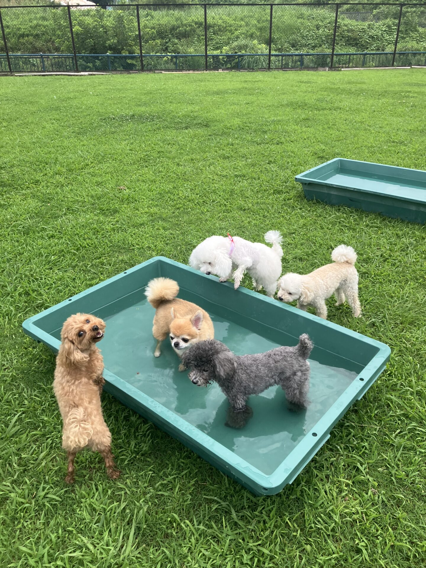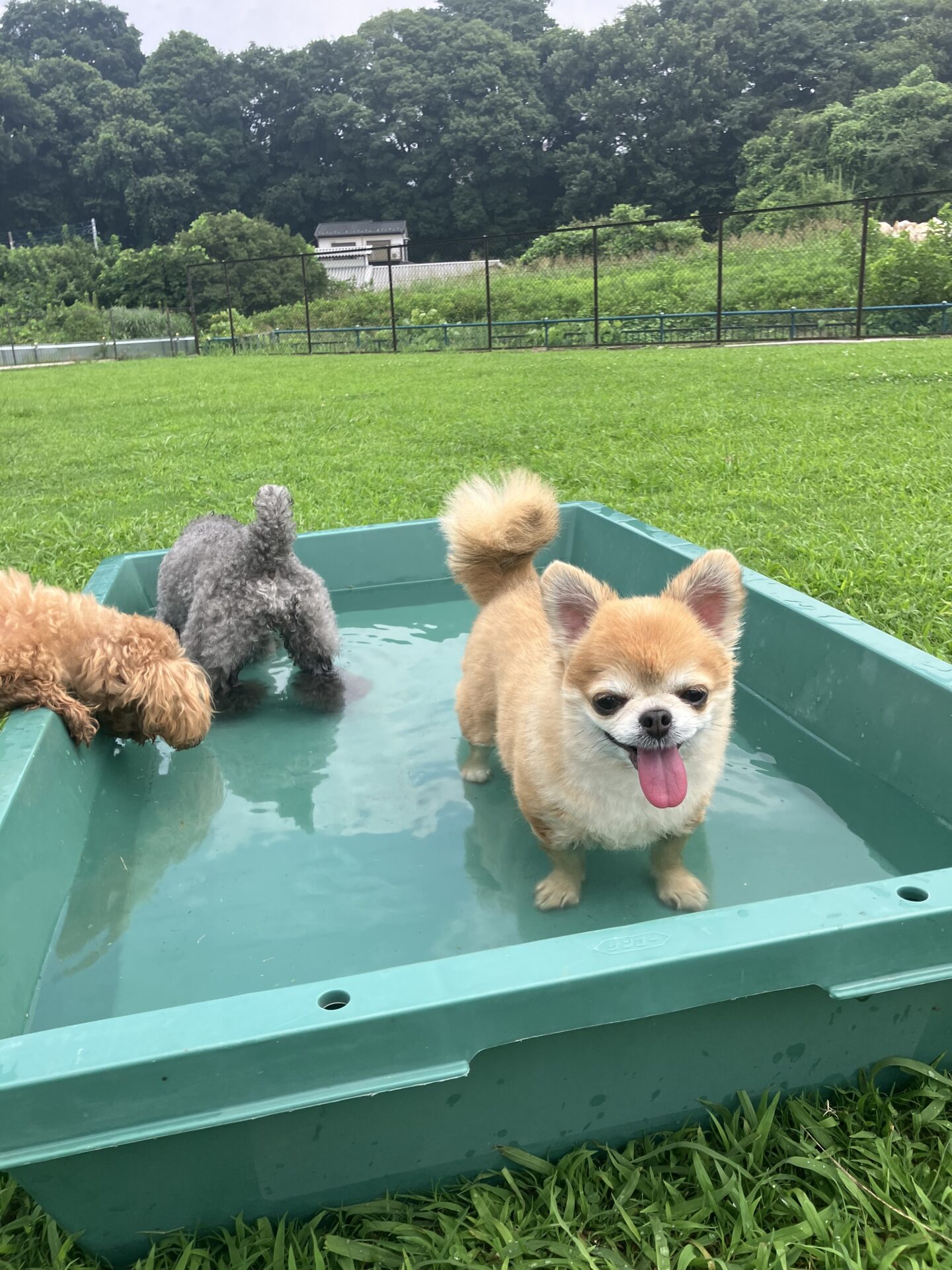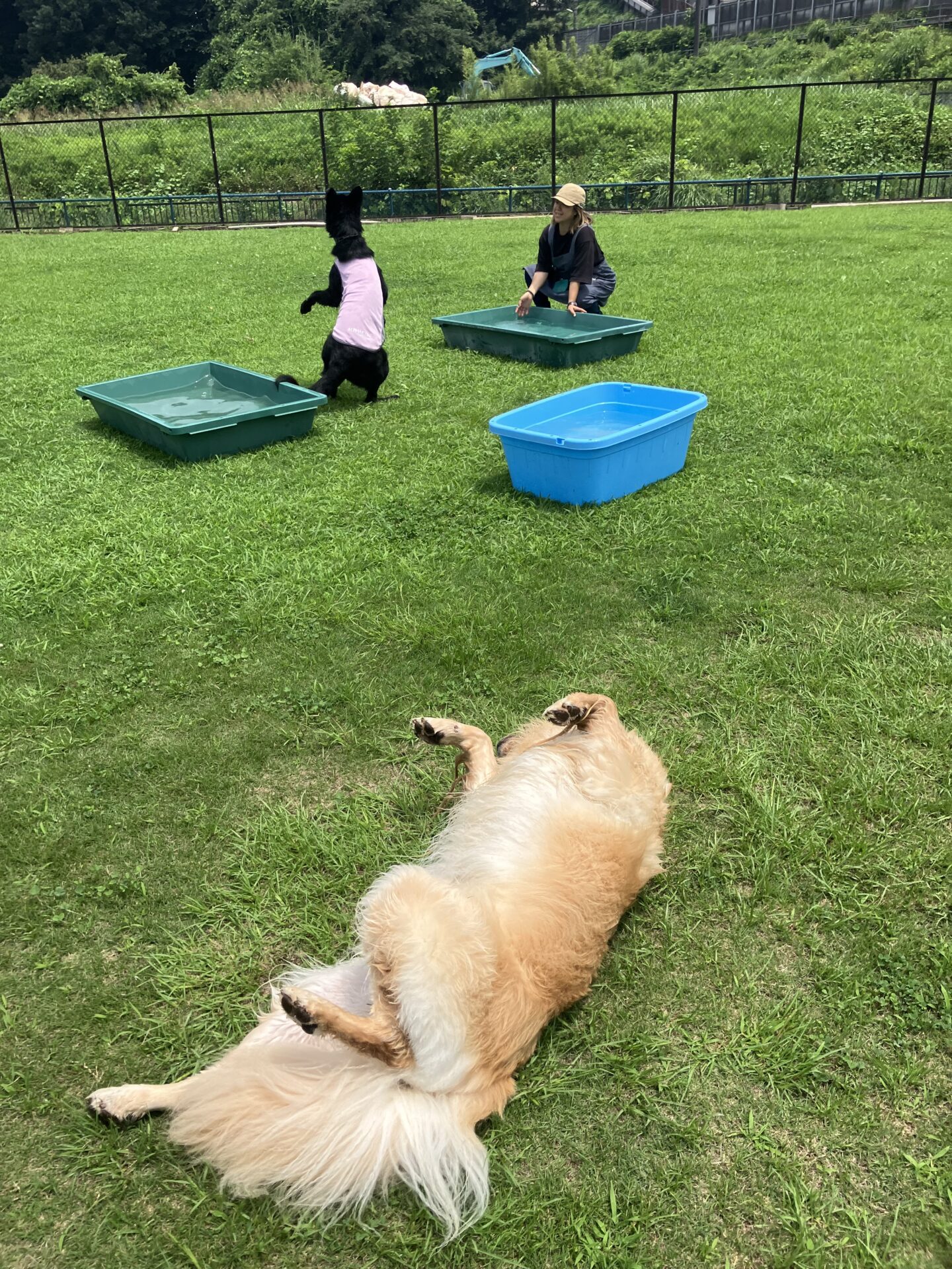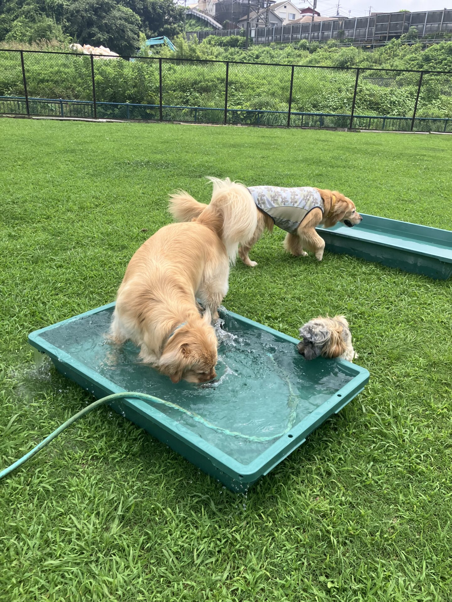 暑い時期は、お水に入りたい子はまだ安心なのですが、そんなに入らない子は特に、熱中症にならない様に、ワンコもスタッフも、ランとお部屋を交代しながら、一日みんなが元気に過ごせる様、チームプレイでフル稼働しております。
