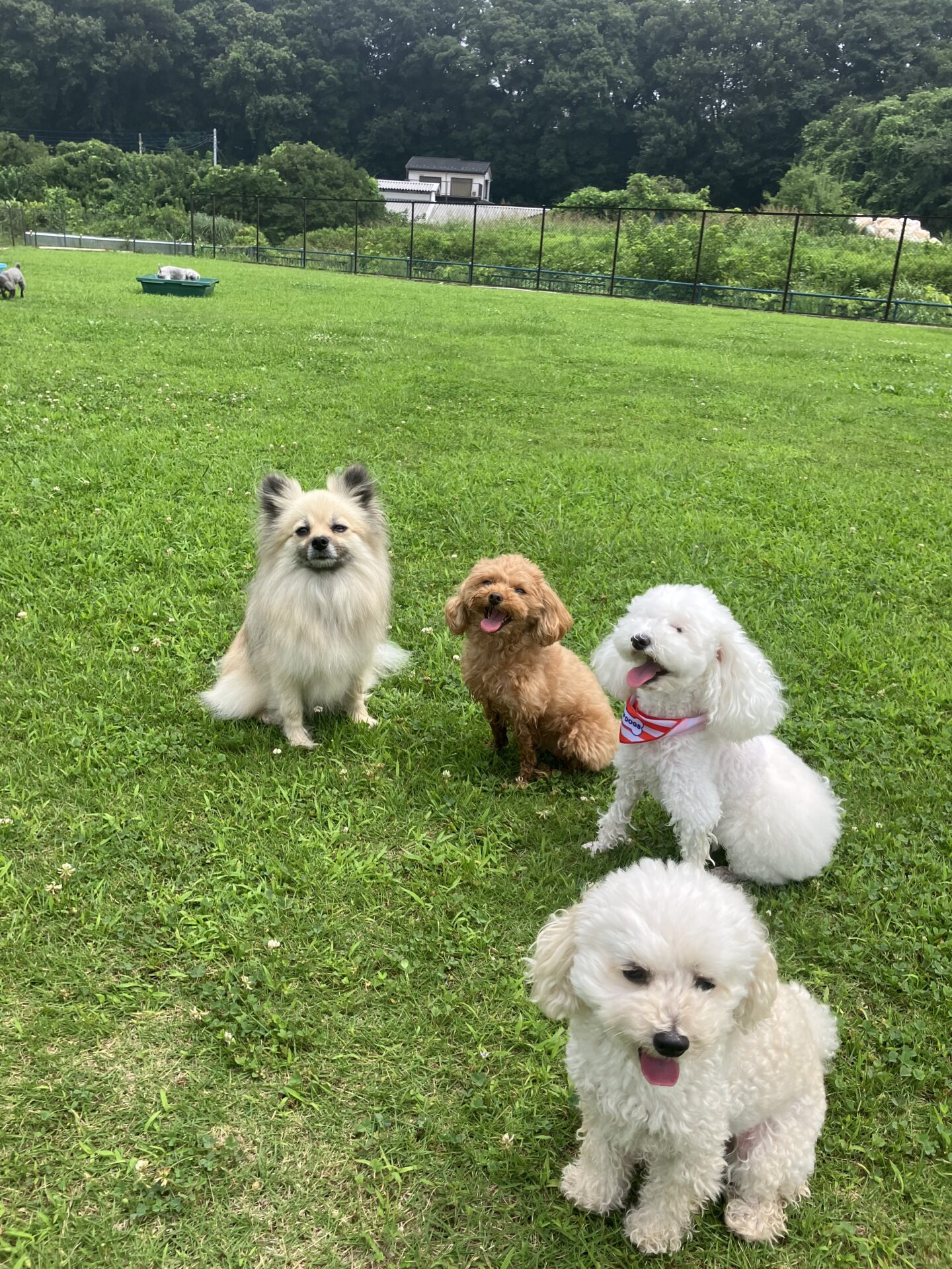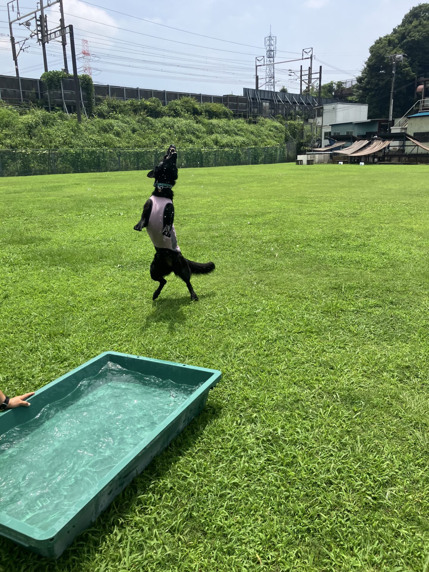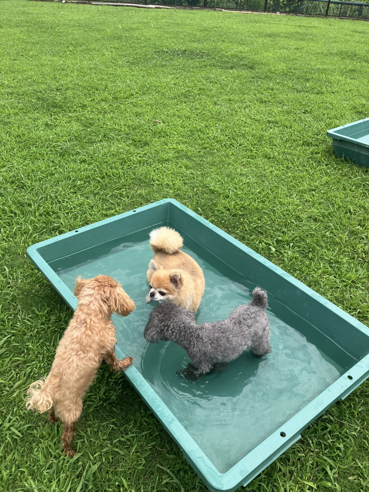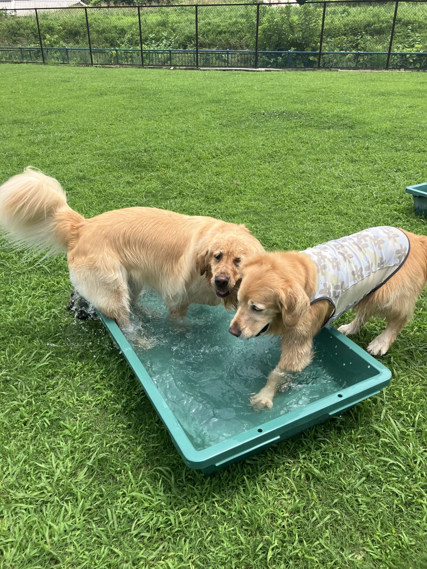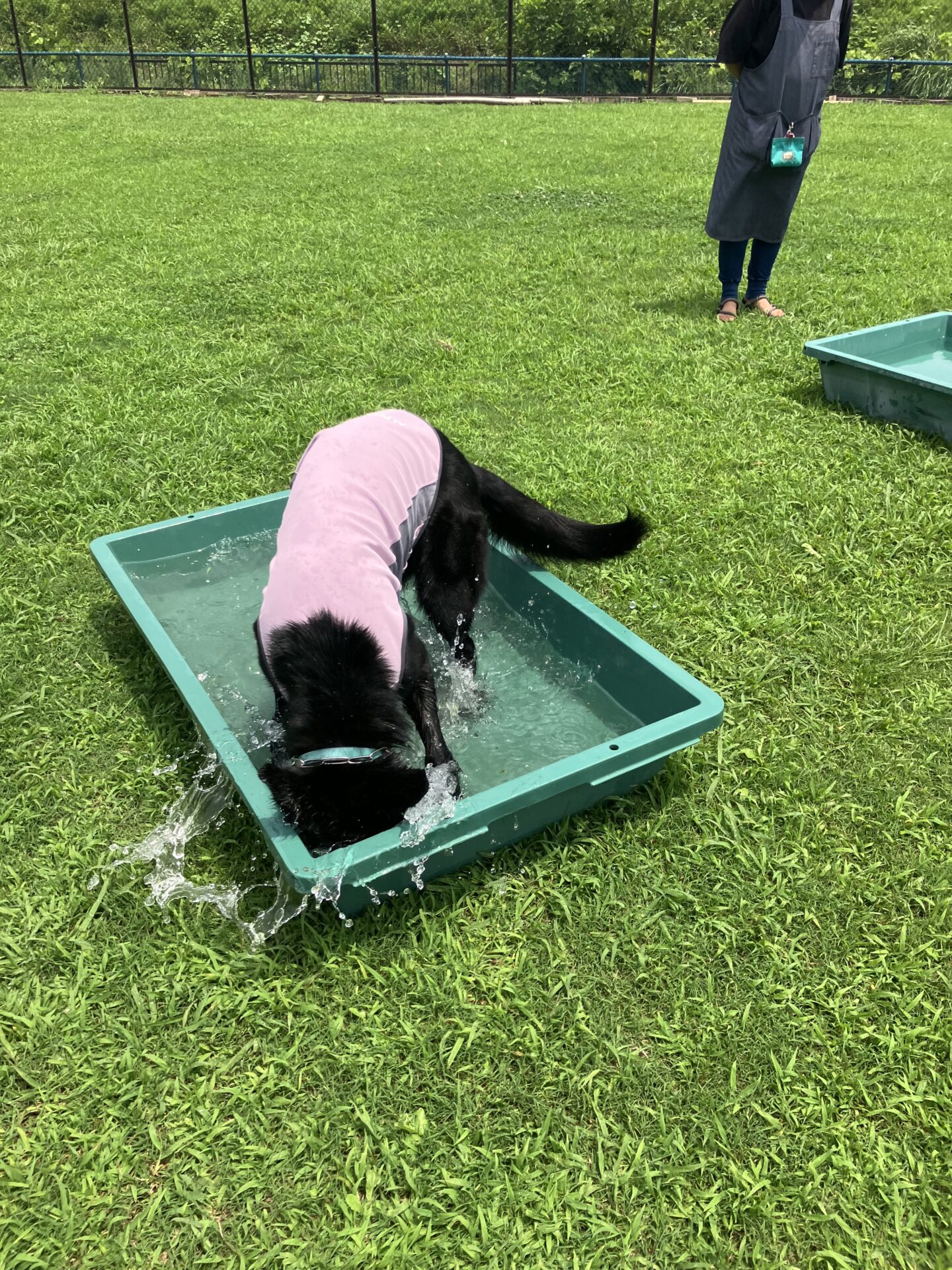 暑い時期は、お水に入りたい子はまだ安心なのですが、そんなに入らない子は特に、熱中症にならない様に、ワンコもスタッフも、ランとお部屋を交代しながら、一日みんなが元気に過ごせる様、チームプレイでフル稼働しております。