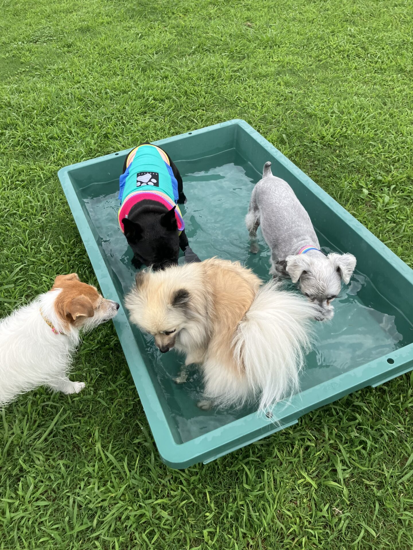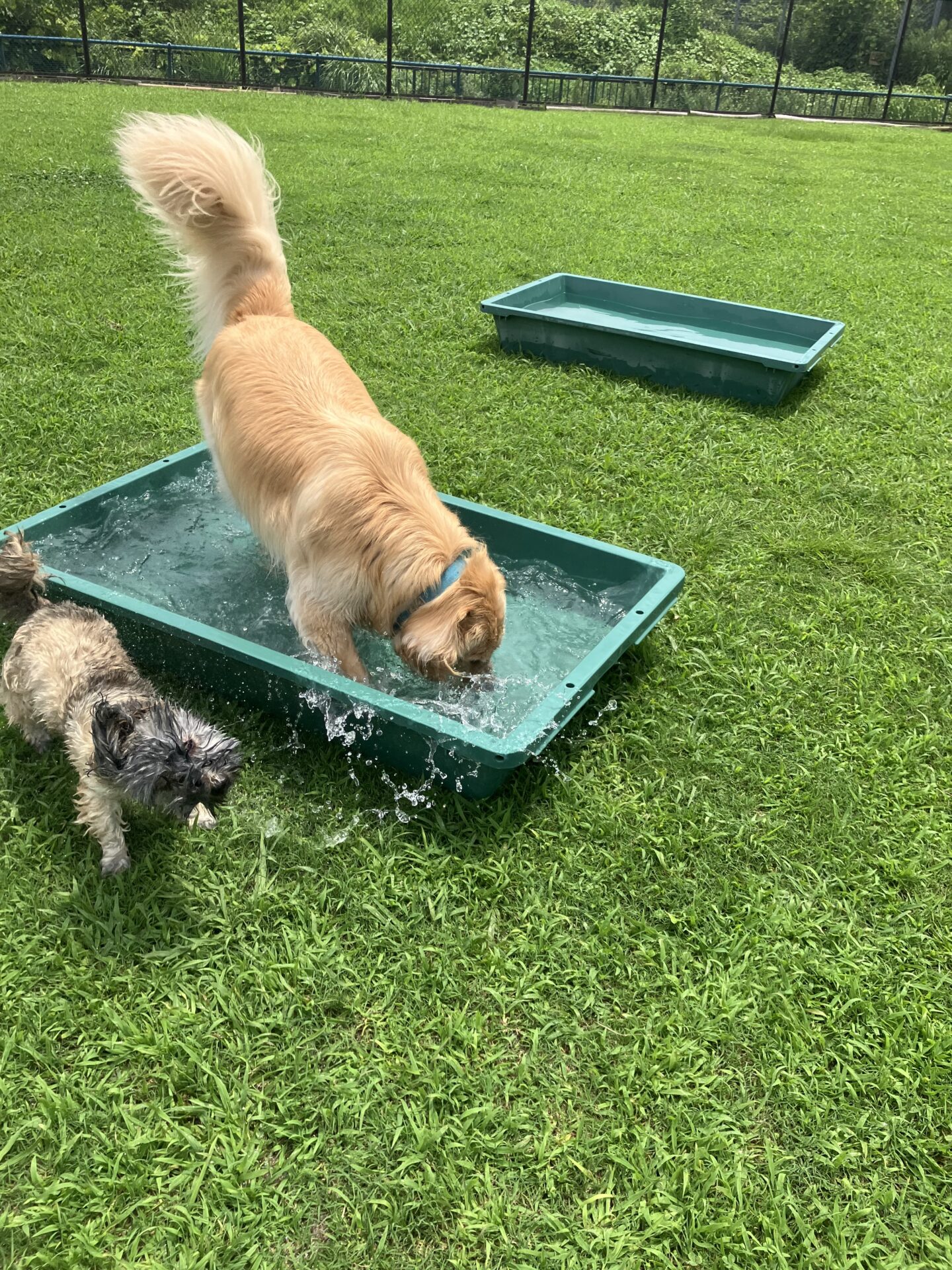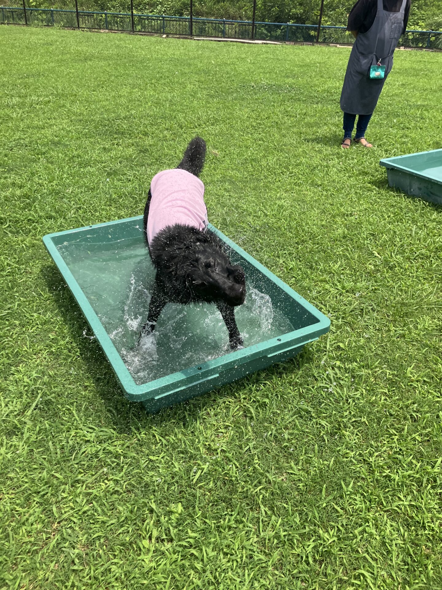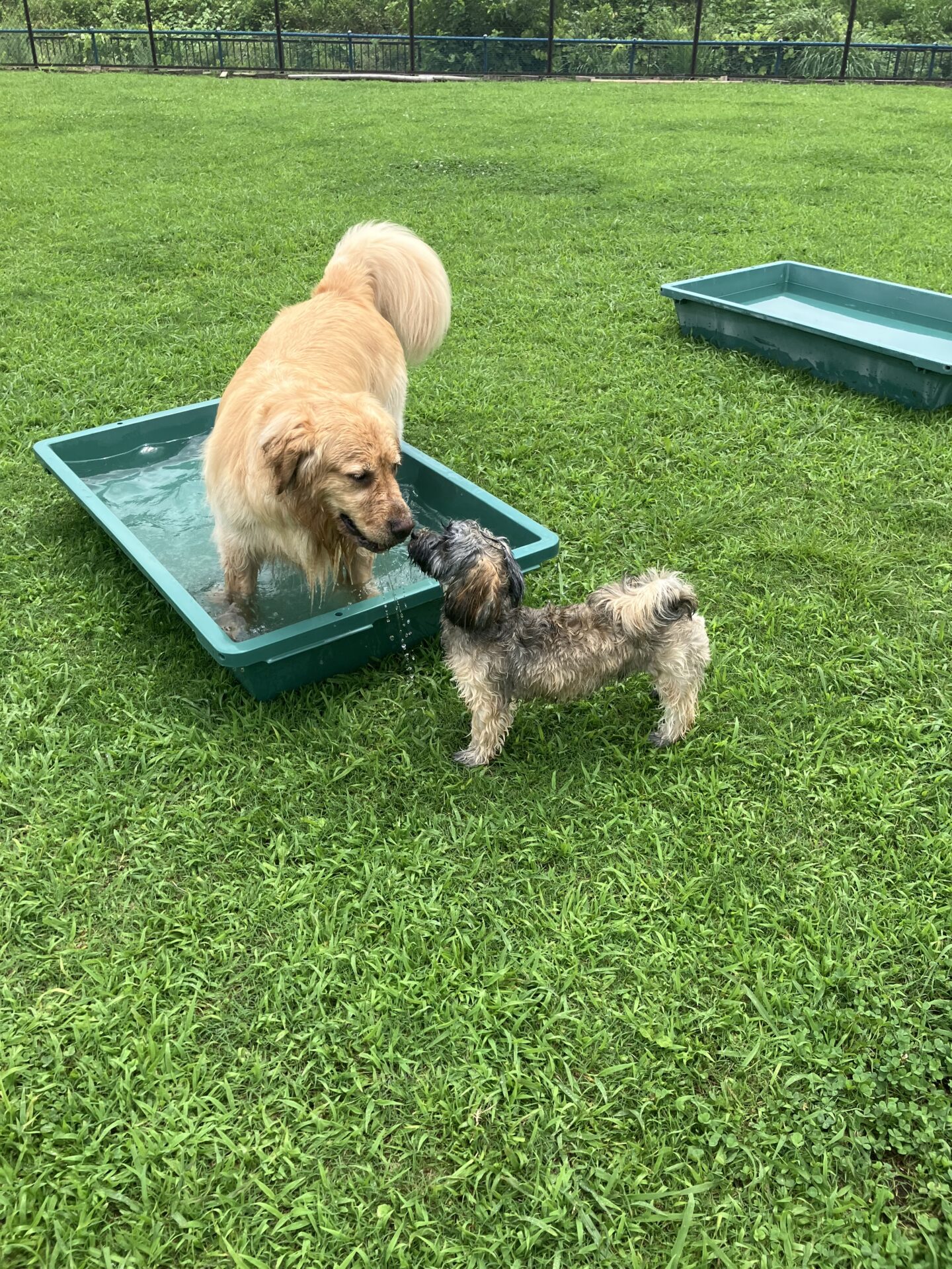 暑い時期は、お水に入りたい子はまだ安心なのですが、そんなに入らない子は特に、熱中症にならない様に、ワンコもスタッフも、ランとお部屋を交代しながら、一日みんなが元気に過ごせる様、チームプレイでフル稼働しております。