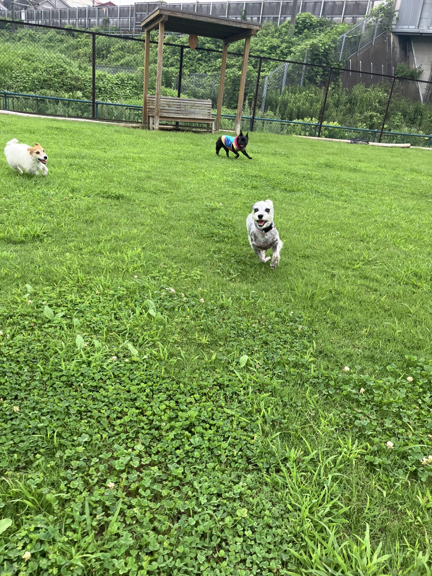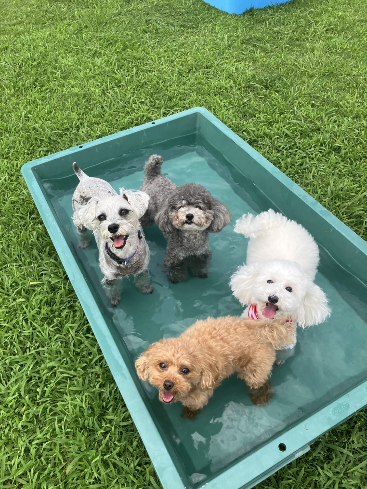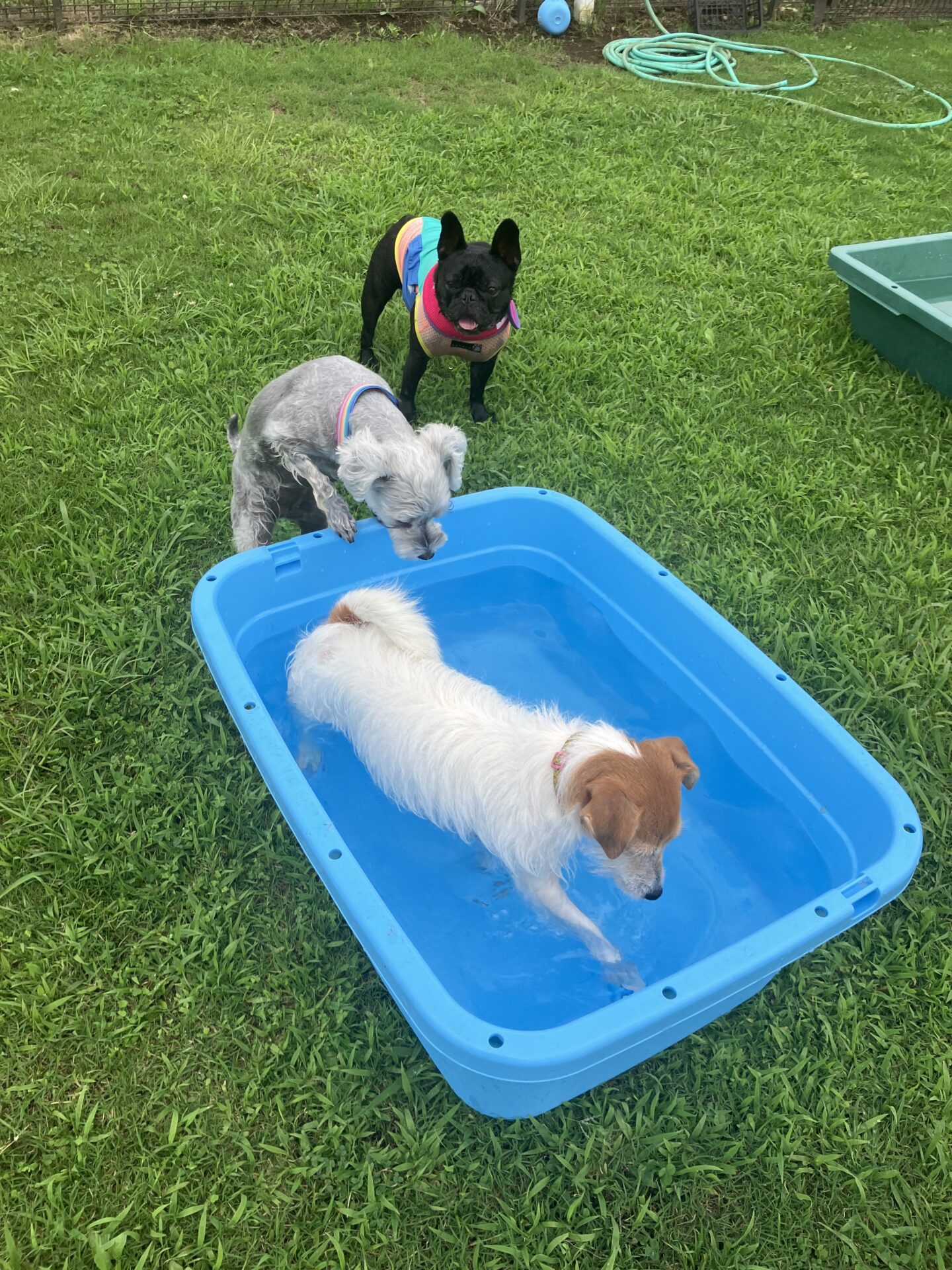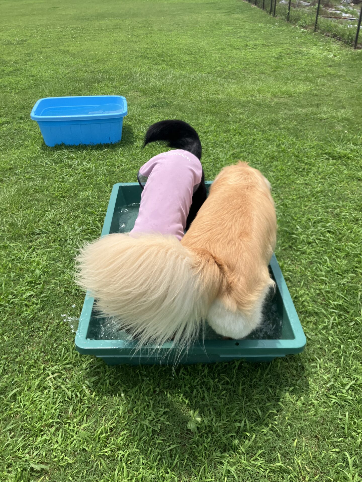 暑い時期は、お水に入りたい子はまだ安心なのですが、そんなに入らない子は特に、熱中症にならない様に、ワンコもスタッフも、ランとお部屋を交代しながら、一日みんなが元気に過ごせる様、チームプレイでフル稼働しております。
